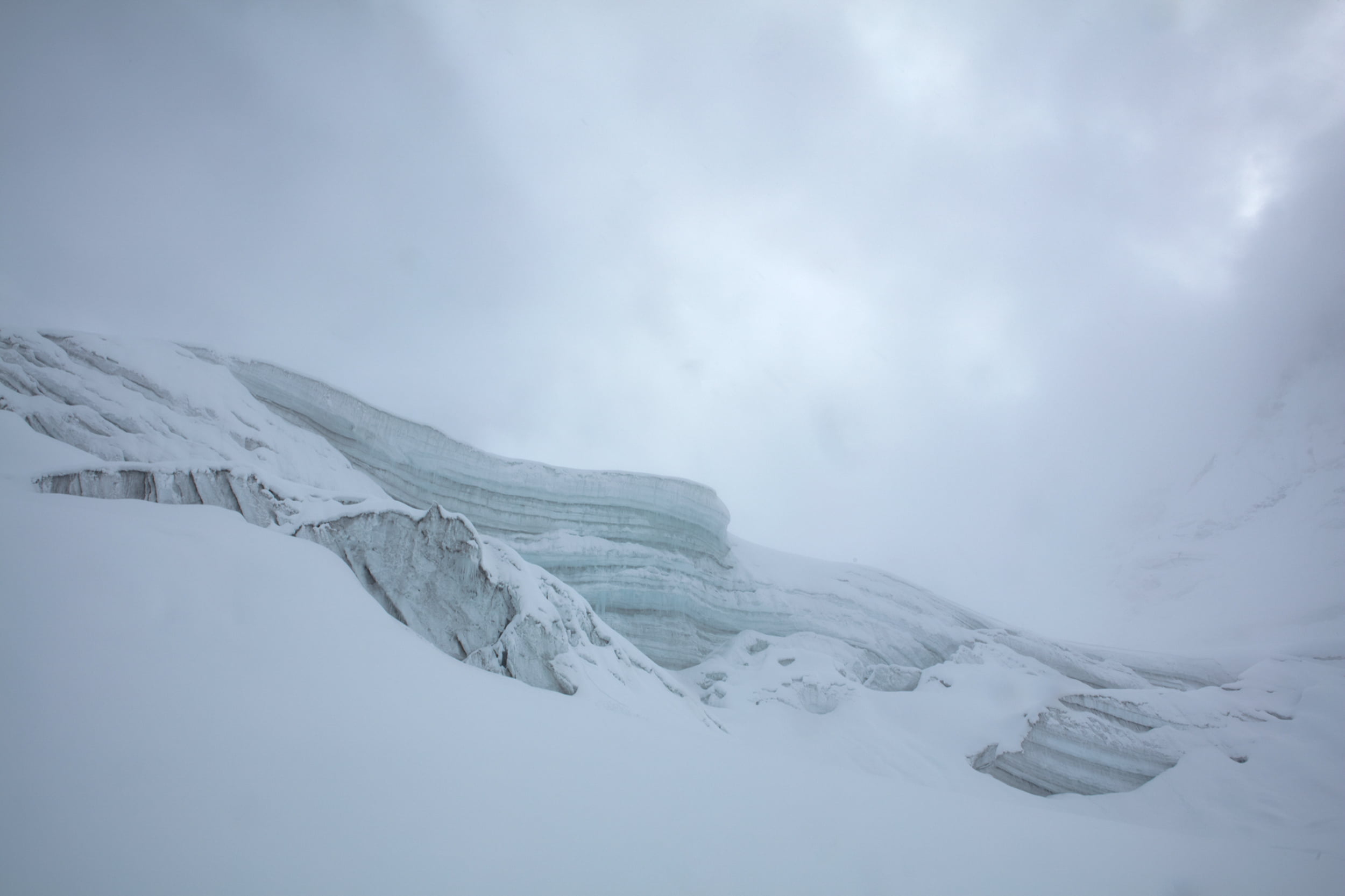 9月23日、バタバタと準備をしてベースキャンプを出発。撮影機材を含めると背負う荷物の重量は15キロを軽く超えている。1週間ぶりに背負うバックパックがとてつもなく重く感じた。果たして順応は上手くいっているのだろうか。雪が降り、ほとんどホワイトアウトしたクレバスだらけの氷河は今の天気と同じように先が見えず、どんよりとした重い不安を抱えながらまだ遥か遠くにある頂を目指して歩きはじめた。