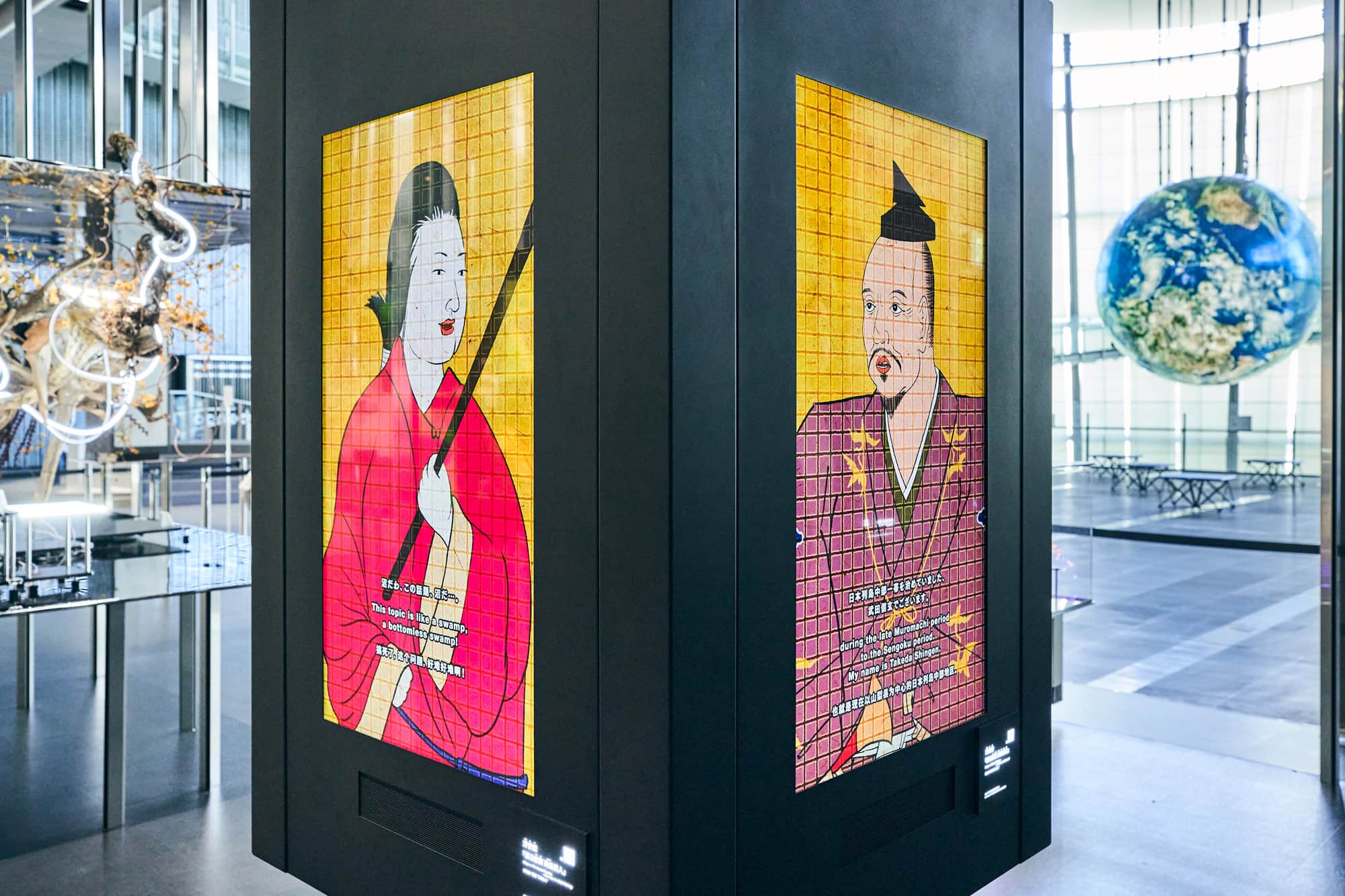 山田さん「たとえば『計算機と自然、計算機の自然』では、歴史上の人物が、社会や文化に技術がどのように影響してきたかを語る展示を設けています。武田信玄は、自らが戦場で使った『のろし』を例に、コミュニケーション戦略というものは、その時代の技術をうまく取り入れることも大事と話しています。オンラインの技術も、私たちが生存戦略として今ある技術を積極的に取り入れ、それが生活の中に溶け込んで自然になっていくと思います。一方で、リアルの価値は確実に上がっていくでしょうね。昔からそうであったように、新しい技術を獲得して、文化として定着していく過程の中で、もっと別な価値観がクローズアップされ、大事になっていくのだと思います」